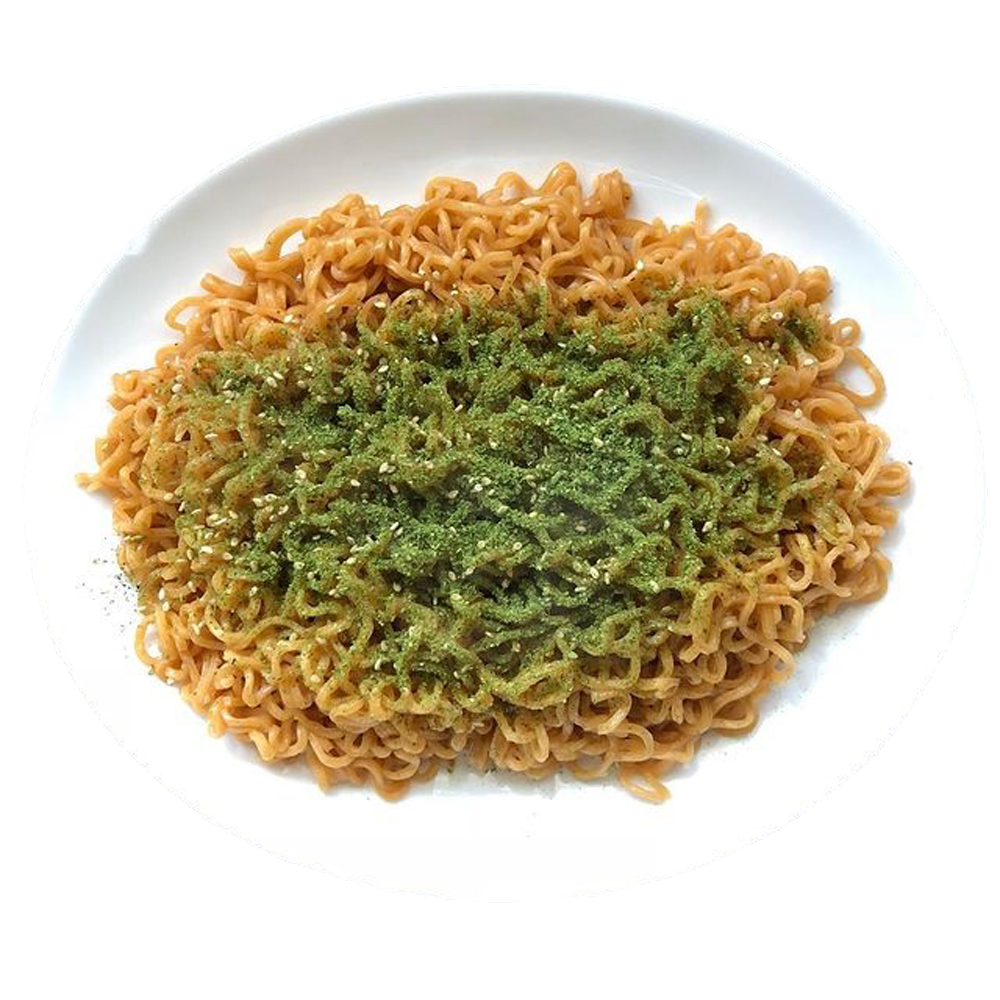 油揚げめん、小麦粉、食用油脂(豚脂、パーム油)、ソース、食塩、香辛料、砂糖、煮干しエキス、ポークエキス、サバ削りぶしエキス、こんぶエキス、ソースパウダー、ビーフエキス、ごま、あおさ、調味料(アミノ酸)、酸味料、カラメル色素、かんすい、酸化防止剤(ビタミンE)、甘味料(ステビア)、大豆、リンゴ、ゼラチン由来原材料を含む ※原材料のあおさは、えび、かにが生息する水域で採取しています。 |