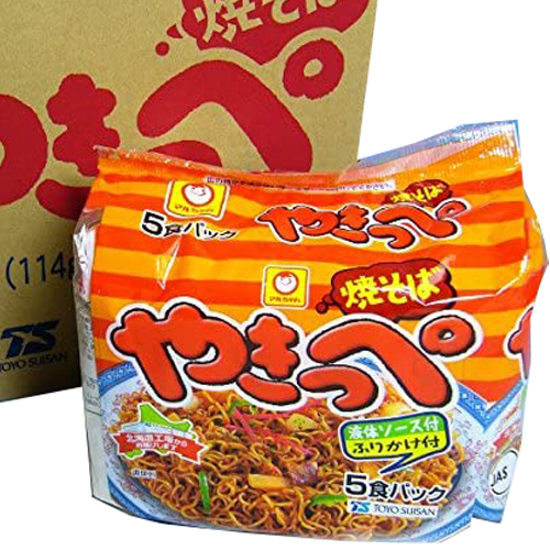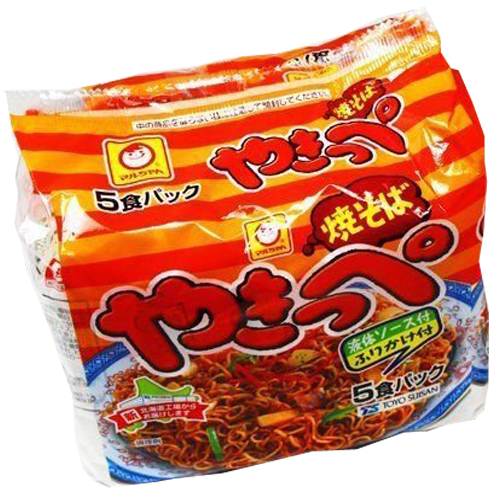 油揚げめん、小麦粉(国内製造)、植物油脂、精製ラード、でん粉、食塩、卵白)、添付調味料(ソース、たん白加水分解物、砂糖、植物油、食塩、酵母エキス、香辛料)、ふりかけ(あおさ、紅生姜)/カラメル色素、炭酸カルシウム、調味料(アミノ酸等)、かんすい、増粘多糖類、酸化防止剤(ビタミンE)、香料、ビタミンB2、ビタミンB1 ※一部に小麦・卵・大豆・りんごを含む |